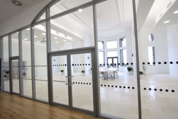 Противопожарные перегородки в коридор могут изготавливаться как в полностью остекленном варианте, так и в частично остекленном исполнении. Основное предназначение таких конструкций — это разделение общего помещения на несколько отдельных рабочих зон. При этом преследуется несколько целей: